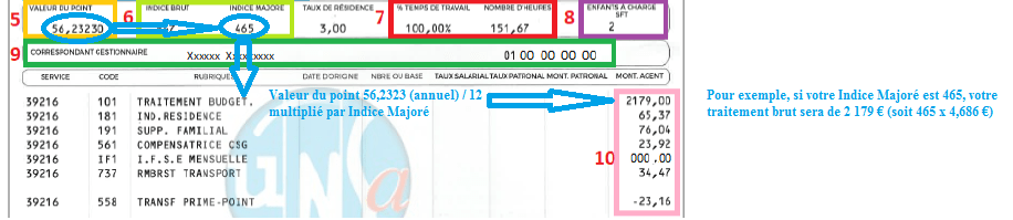 La rémunération mensuelle est un salaire brut calculé en multipliant l’indice majoré de l’échelon par la valeur du point appliqué dans la fonction publique (au 1er janvier 2021 : 56,2323 € annuel soit 4,6860€/mois).