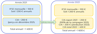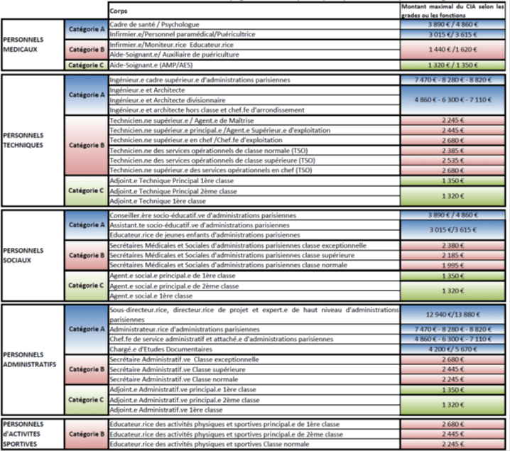 Actuellement, le CIA a la particularité à la Ville de Paris d’être partiellement reportable sur le montant de l’IFSE de l’année suivante et donc de contribuer à son éventuelle augmentation. Ainsi jusqu’à présent, le CIA attribué en fin d’année est soclé pour 75% en IFSE et pour les 25% restant, versé dans le CIA de l’année suivante.