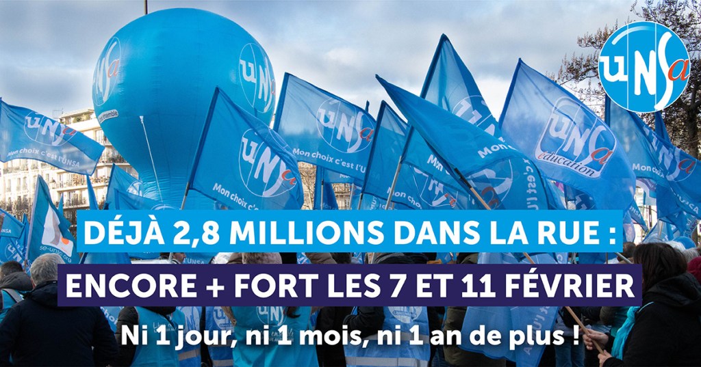 À l’appel de l’ensemble des organisations syndicales, la mobilisation du 31 janvier a confirmé notre détermination à refuser le projet de réforme des retraites présentée par le gouvernement. L’intersyndicale nous appelle à nous mobiliser toujours plus massivement, par la grève et la manifestation, le mardi 7 février puis le samedi 11 février. Le gouvernement doit entendre le rejet massif de ce projet et le retirer.