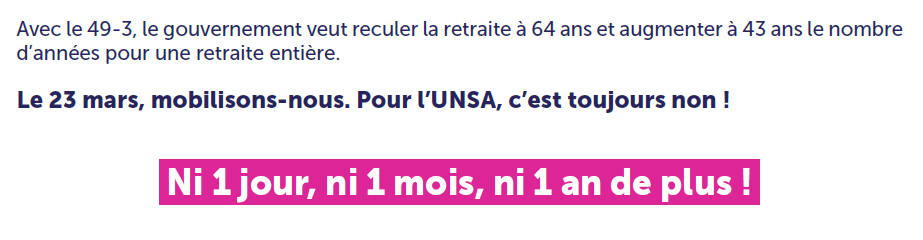 Attention le cortège UNSA devra emprunter l’itinéraire de délestage si nécessaire c’est-à-dire passer par : la rue Saint Antoine, la rue de Rivoli, et l’avenue de l’Opéra.