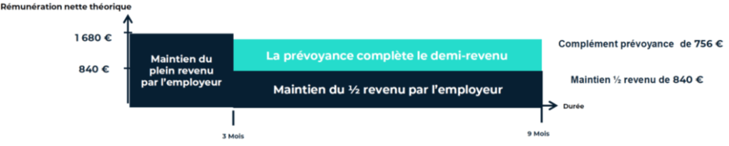 Cas pratique d’indemnisation en maladie ordinaire de – 12 mois (pour un salaire de 2 100 € bruts / mois) :