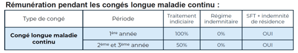 ● Prolongation : Accordée pour trois à six mois par le PAMA (le Pôle Aptitudes, Maladies, Accident), nécessitant un certificat de prolongation du médecin. Avis du conseil médical requis après un an de CLM.