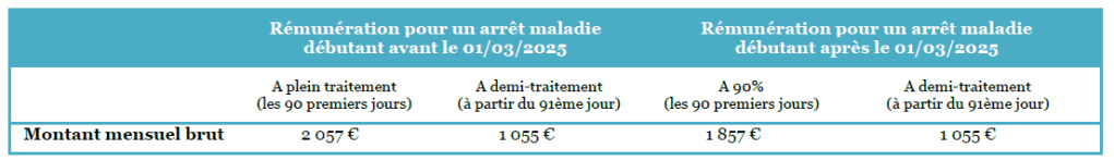 Depuis le 1er mars 2025, un agent en congé de maladie ordinaire ne perçoit plus que 90 % de son traitement pendant trois mois, avant de tomber à 50 % les neuf mois suivants.