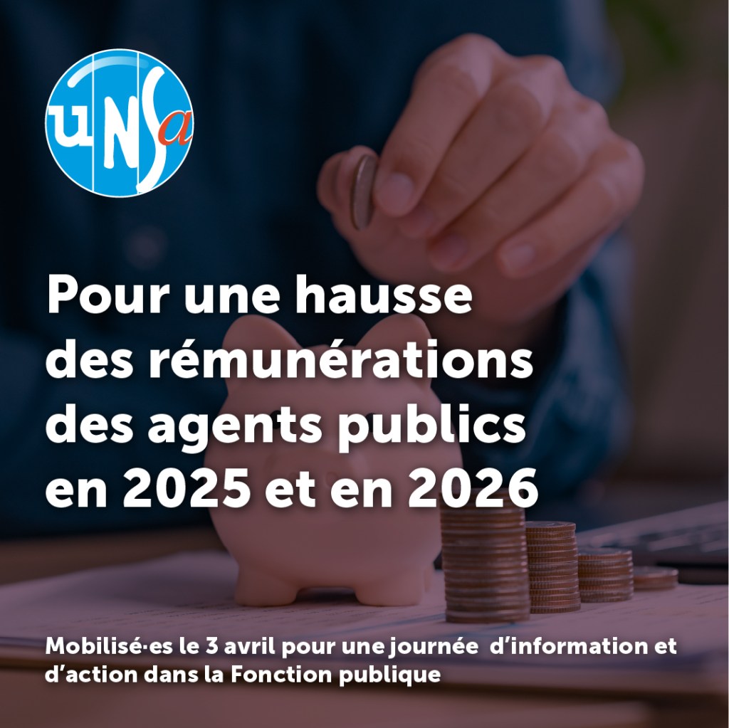 L’UNSA Fonction Publique se mobilise le 3 avril pour le pouvoir d’achat des agents publics et contre la baisse de la rémunération pendant les congés de maladie.
