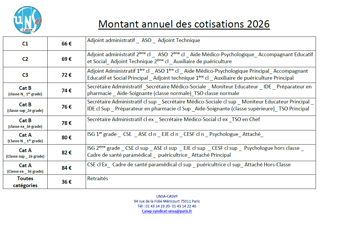 Grille cotisation 2026
